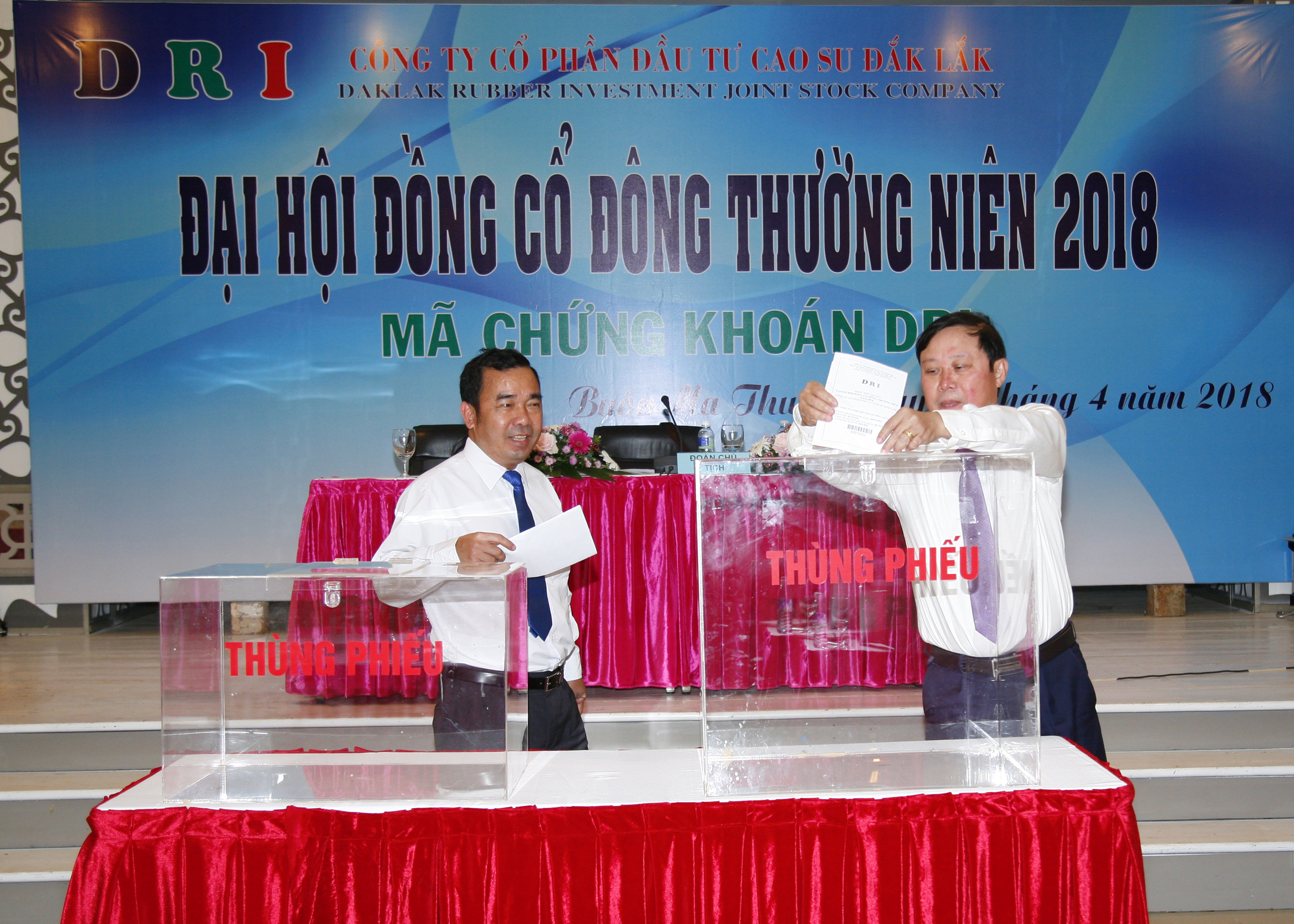 Ngày 10/4/2018, Công ty Cổ phần Đầu tư cao su Đắk Lắk tổ chức ĐHĐCĐ thường niên 2018 với sự có mặt145 cổ đông tham dự và ủy quyền, đại diện cho 57.878.816 cổ phần có quyền biểu quyết chiếm 79 % tổng số cổ phần của công ty DRI